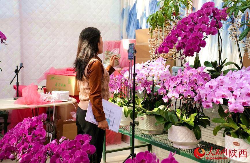 作为年宵花市场的“主力军”,裕兴农业的蝴蝶兰已进入销售旺季。温室中,工人们来回穿梭,换盆、浇水、包装,忙碌不停;展区内,销售人员正通过社交媒体平台进行直播卖货,处处都洋溢着丰收景象。