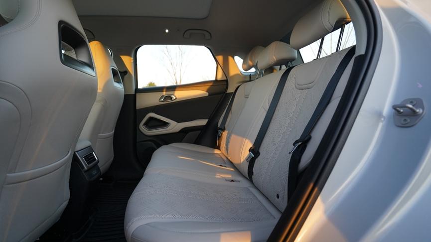 座椅光看样子颇有二十多万中高端车的沙发感,坐垫看起来足够厚,而且表面还有菱形格纹的打孔设计。实际乘坐感也让人觉得填充很扎实,颇为有支撑感。