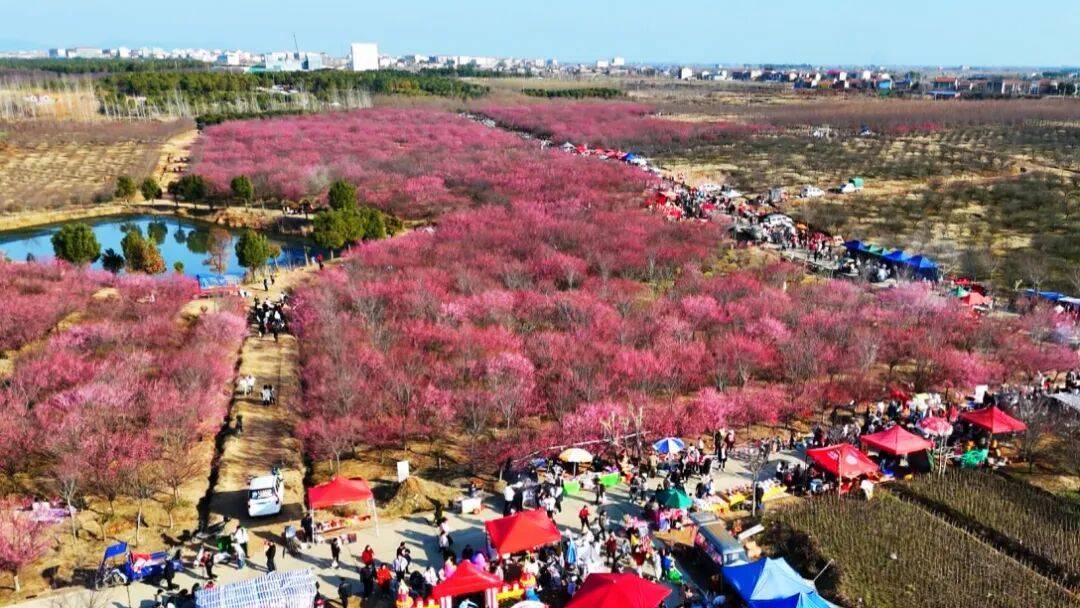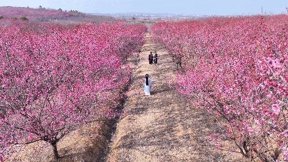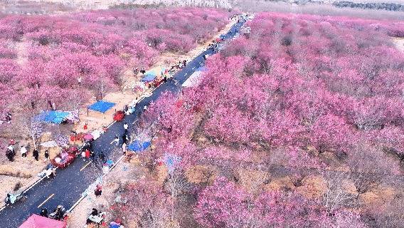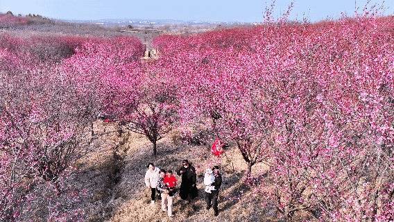 步入邹岗镇生态梅园,漫山遍野的梅花构成了一幅绚丽画卷:红梅似火燃情,宫粉如霞映彩,白梅胜雪凝霜,层层叠叠的花瓣缀满枝头,绵延成无边无际的花海。