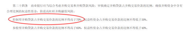 根据2025年12月31日国家金融监督管理总局最新印发的《商业银行并购贷款管理办法》第二十四条,控制型并购贷款占并购交易价款的比例不得高于70%。结合上述交易的资金要求,收购方及关联方自有资金占比不低于50%,即便剩余资金全部采用并购贷款,其占比也不会超过50%,远低于70%的监管上限,进一步保障了交易的合规性与安全性。