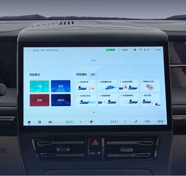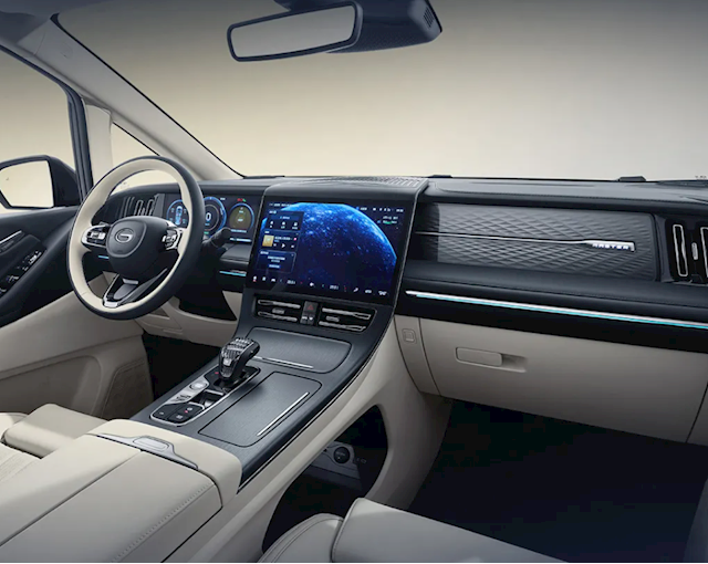 内饰采用环抱式座舱,全系标配12.3英寸全液晶仪表、14.6英寸中控屏,搭载高通骁龙8155芯片的ADiGO Space交互智能座舱,还配备8枚扬声器、水晶挡杆等配置。